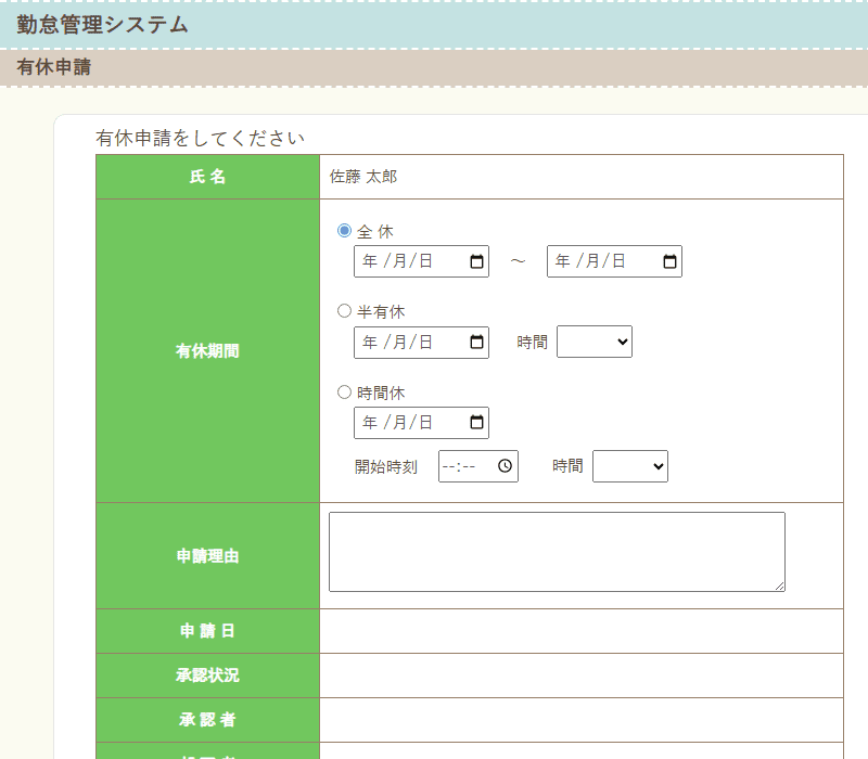 有休申請 :有休の申請・承認者による承認