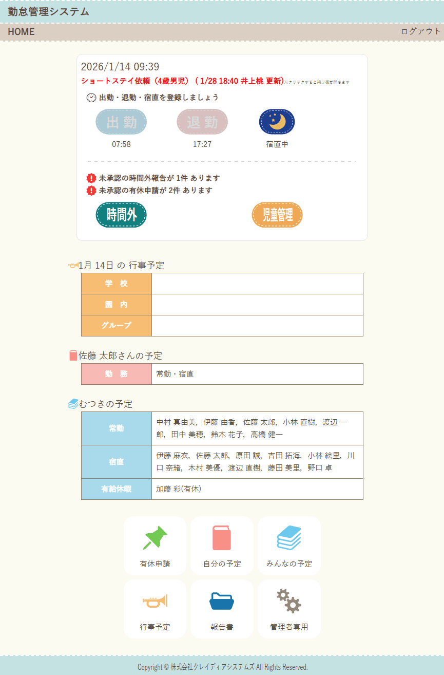 群馬県内の児童養護施設の職員様向けに勤怠管理システムを導入いたしました。
