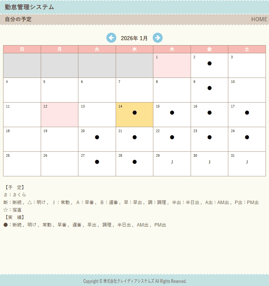 予定機能 :管理者による予定入力と閲覧専用の予定表