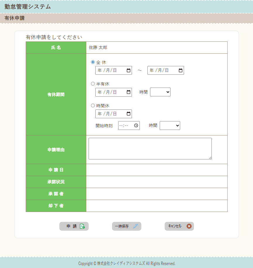 有休申請 :有休の申請・承認者による承認