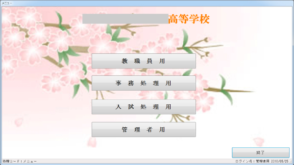 クラス分け処理、履修登録、出欠席入力、指導要録、調査書